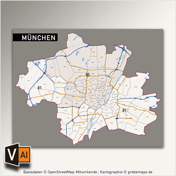 Vektorkarte, editierbar, skalierbar, veränderbar, anpassbar, ebenen-separierter Inhalt, Karte mit sich überlagernden Inhalten für die eigene individuelle Weiterverarbeitung