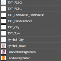 - Die editierbaren textlichen Bezeichnungen der Landkreise / Stadtkreise liegen auf einer eigenen Ebene.
