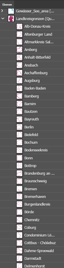 - Benennung LK-BL-Flächen mit Landkreisnamen und Bundesländernamen im Ebenen-Menü (LayerElementName = LK-Name oder BL-Name).