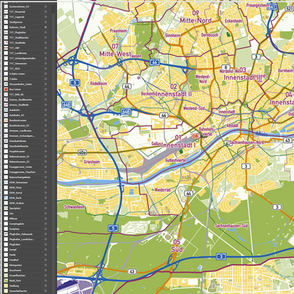 Frankfurt am Main Stadtplan Vektor Stadtbezirke Stadtteile Topographie