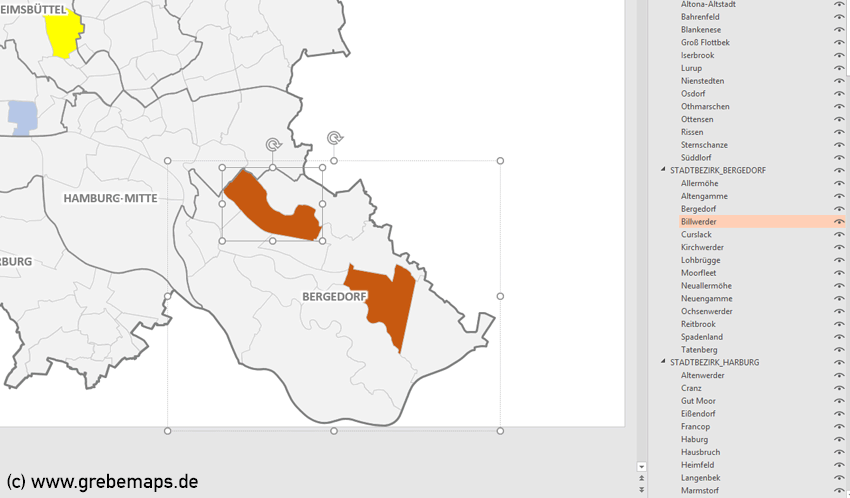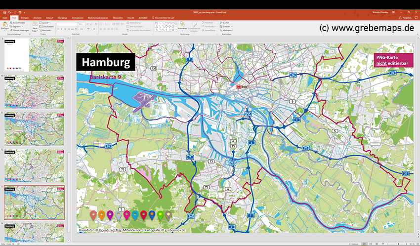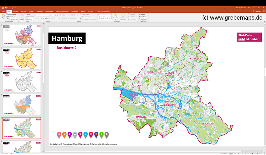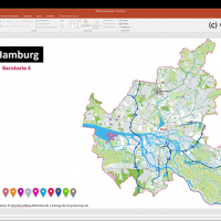 PowerPoint-Karte Hamburg mit Bezirken und Stadtteilen mit Bitmap-Karten, mit diversen topographischen Bitmap-Basiskarten