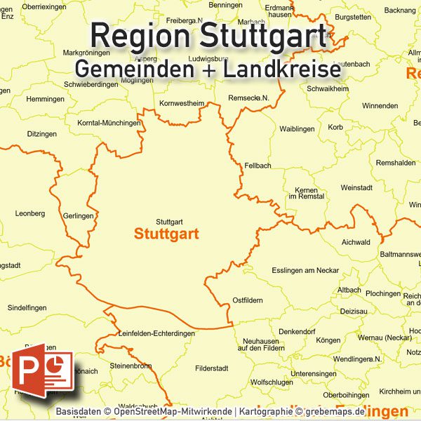 – PowerPoint-Karte Region Stuttgart Gemeinden Landkreise Vektordaten –