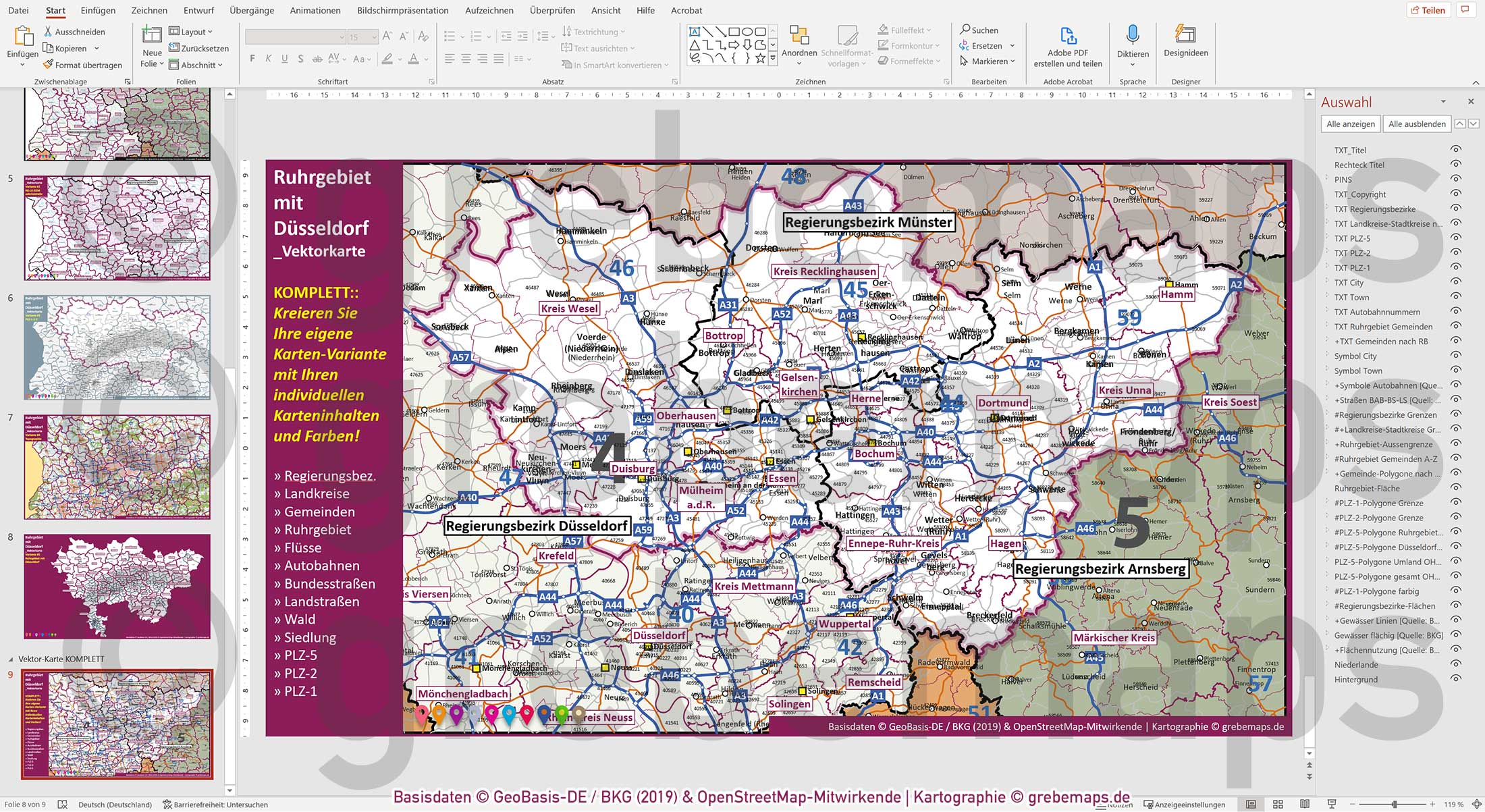 ![PowerPoint-Karte Ruhrgebiet mit Düsseldorf Postleitzahlen 1-2-5-stellig Gemeinden Landkreise Regierungsbezirke Autobahnen einfärbbar bearbeitbar download - mit Deutschlandkarte [Digital] – Bild 9](https://www.grebemaps.shop/wp-content/uploads/2021/12/60146_powerpoint_karte_ruhrgebiet_mit_duesseldorf_postleitzahlen_plz_2_5_stellig_gemeinden_landkreise_landkarte_vektordaten_vektorkarte_editierbar_bearbeitbar_19.jpg)