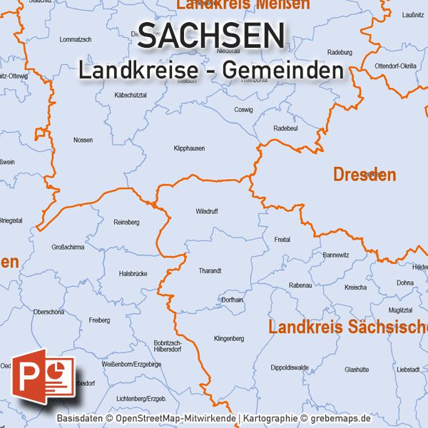 – PowerPoint-Karte Sachsen Landkreise Gemeinden Vektordaten –